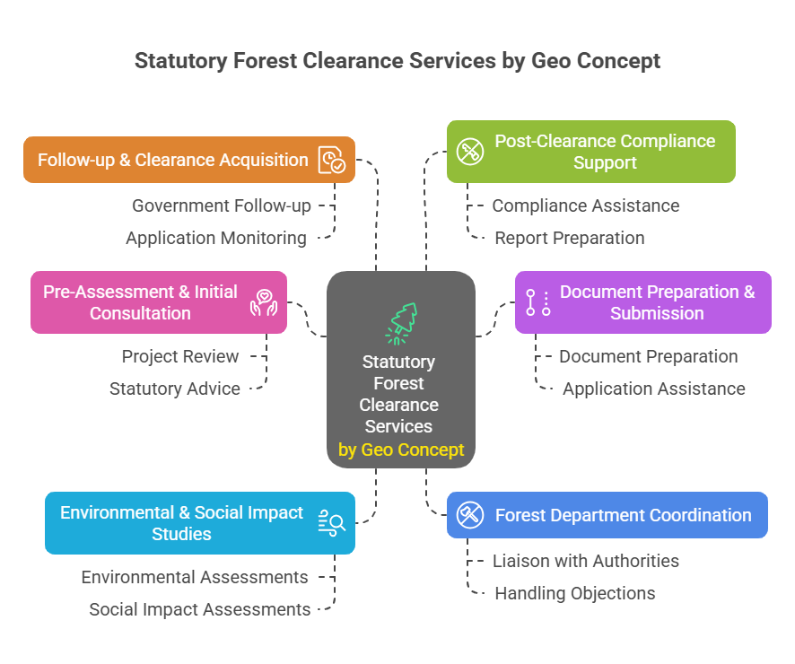 Geo Concept: Facilitating Compliance with Forest Conservation Laws Navigating the complexities of obtaining Statutory Forest Clearance (FC) is critical for any project that involves forest land. At Geo Concept, we specialise in providing comprehensive Statutory Forest Clearance (FC) services, ensuring that your project complies with all legal requirements set forth by Indian forestry and environmental laws.